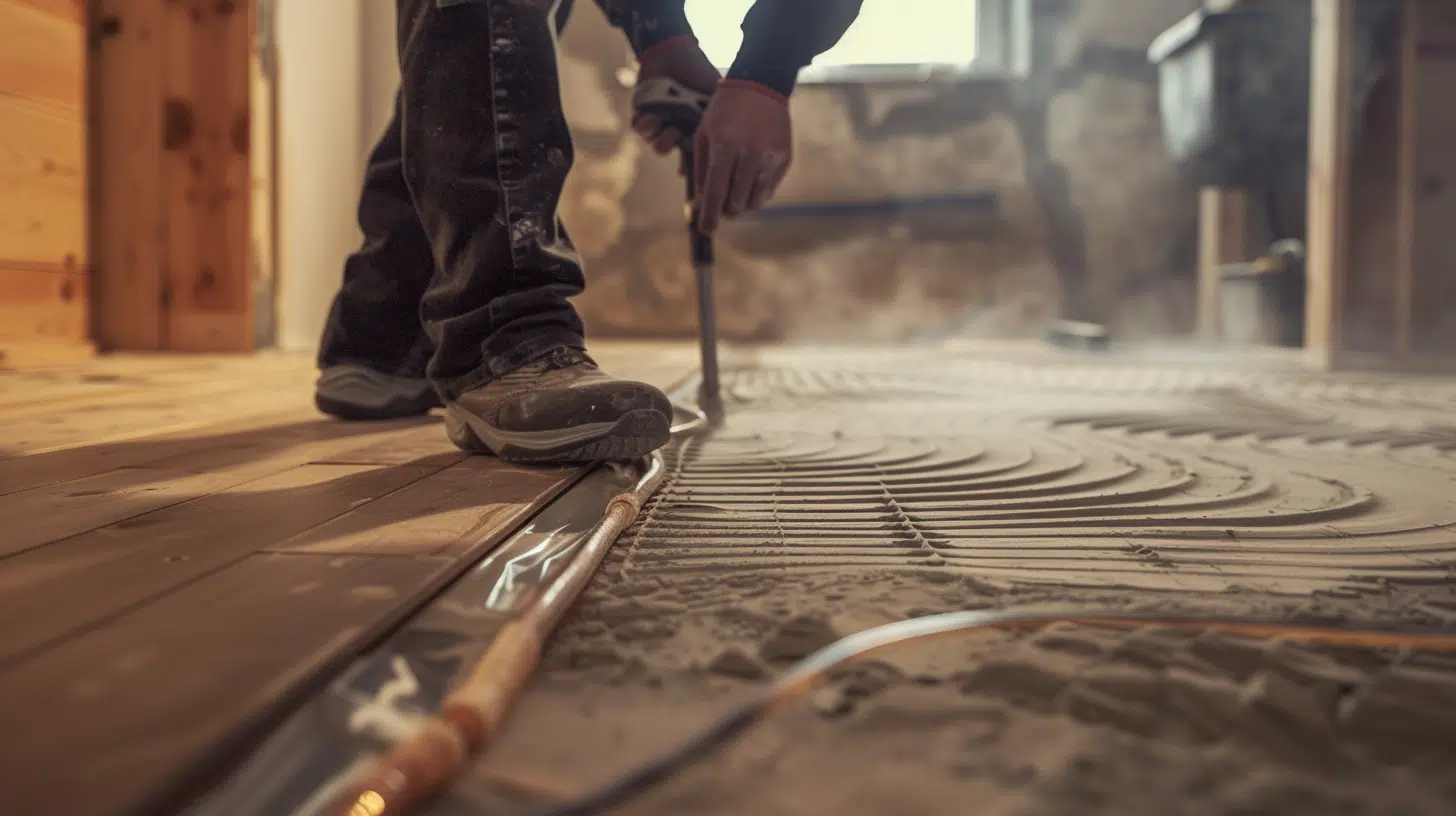 Respectez les normes NF DTU 65.14 et NF DTU 51.2. Avant l'installation, assurez-vous que la chape a séché pendant au moins trois semaines. Chauffez progressivement le sol chauffant trois semaines avant la pose du parquet.